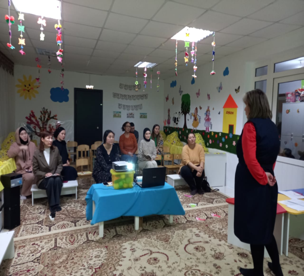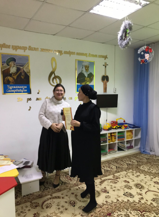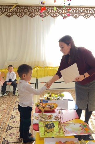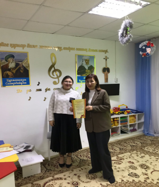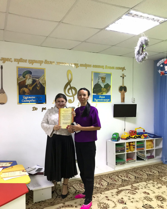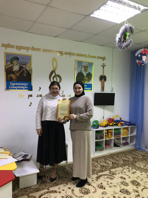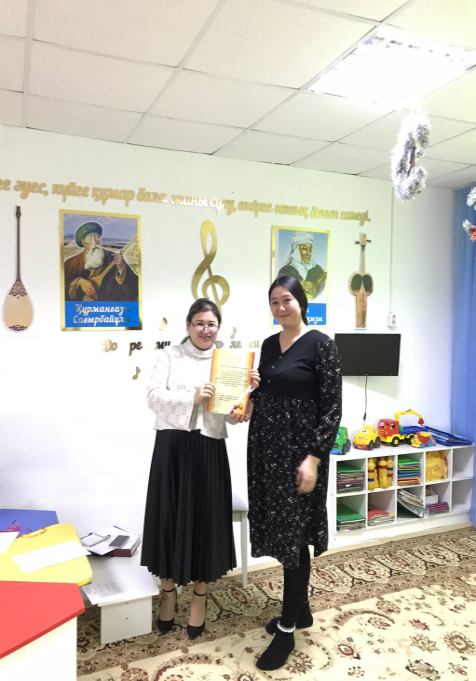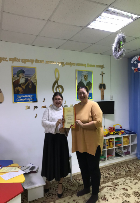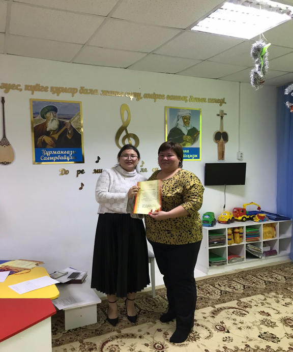 «Гүл» тобының тәрбиешісі Борис Ақжонас Берікқызы №40 «Болашақ» балабақшасында өткен «Мектепке дейінгі ұйымда нәтижеге бағытталған тәрбие мен оқытудың ынтамақтастықта ұйымдастыру» тақырыбындағы семинарға қатысып, кейін тәрбиешілерге бағдарлама бойынша көргенін айтып, бөлісті.