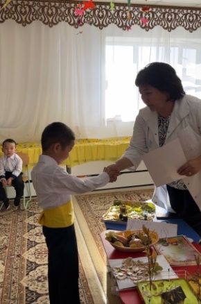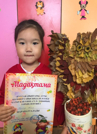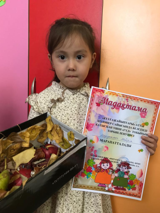 «Гүл» тобының тәрбиешісі Борис Ақжонас және Айсана Жасенбайқызы «КҮЗ ХАНЗАДАСЫ МЕН ХАНШАЙЫМЫ» атты тақырыбында мерекелік ертеңгілікті сайыс түрінде оздырды.Сайысқа тәрбиеленушілеріміз өте белсенді қатысып, І тур «Күз кереметтері» қатысушылар ортаға өз қолдарымен жасаған қолөнерлерін, ІІ тур «Өнерлі бала-елдің көркі» ән мен билерін және ІІІ тур «Сұлулық сыры» атты пакеттен тігілген сән үлгілерін көрсетті. Әділ қазылар алқасының шешеумен Бас жүлдені Оразғали Нұрберген, І орынды Мерғалым Мансұр, ІІ орынды Тлеген Еркеназ алса, ІІІ орынды Жанбай Нұради мен Уалиахметова Мединаға берілді.