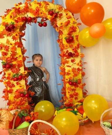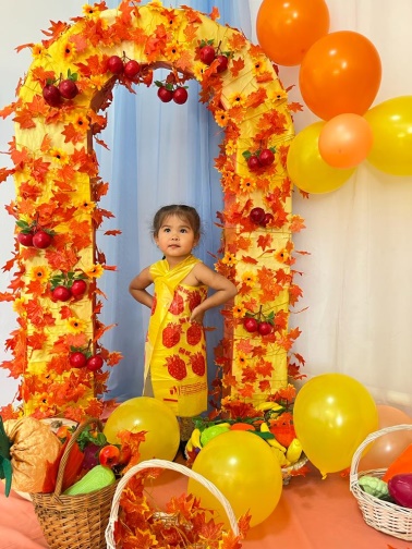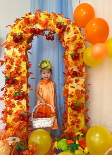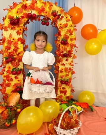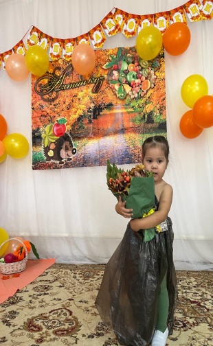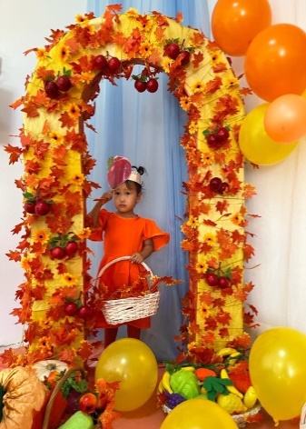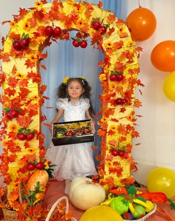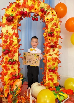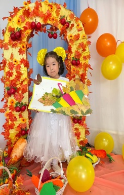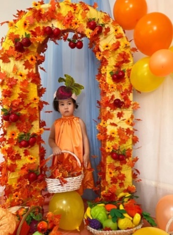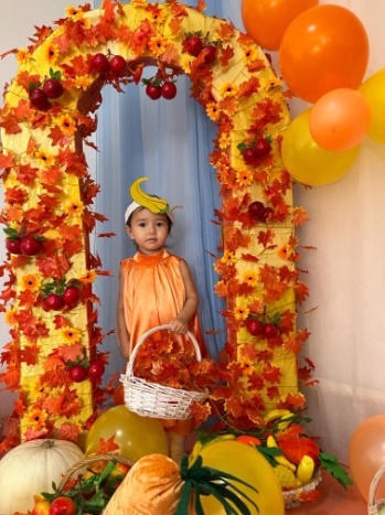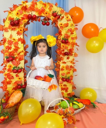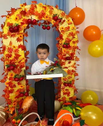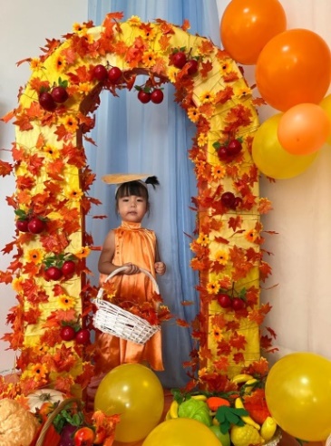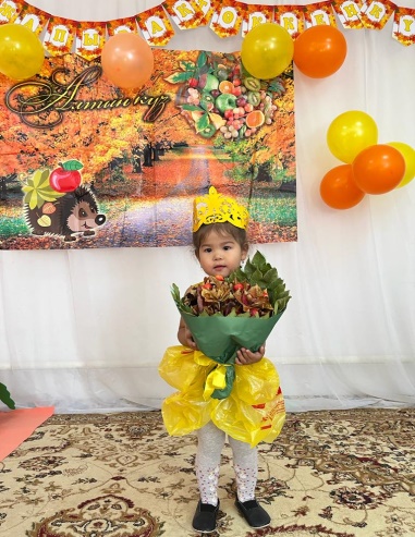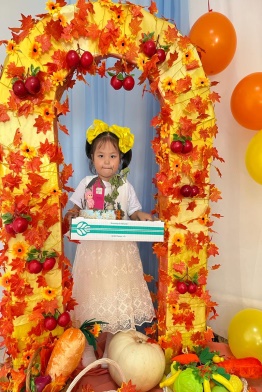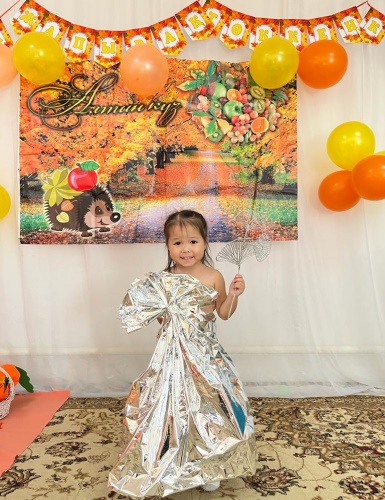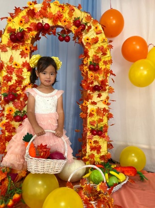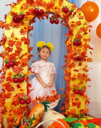 «Ай» тобының тәрбиешісі Қ.Б.Жаналиева “Қош келдің Алтын күз” атты ертеңгілігінде, балаларға көкөніс пен жеміс – жидекті ажырата бөліп, себеттерге салдырып, балалардың бастарына қағаздан қиылған жемістер мен көкөністерді киіп,топқа бөлінді. Бақта, бақшада не өсетіні туралы мағлұмат берді. Алтын күз туралы әндер айтылып, би қимылдары жасалды.