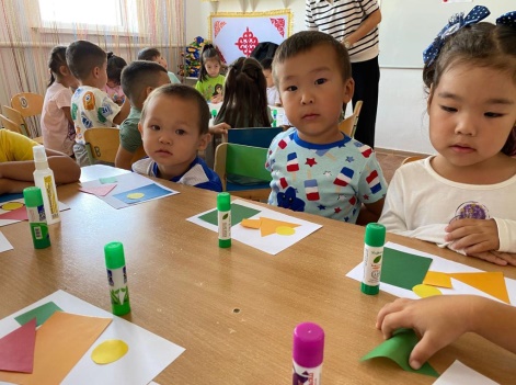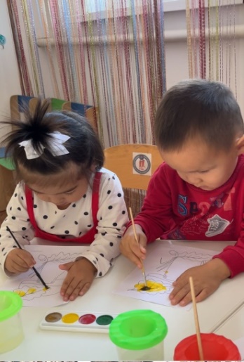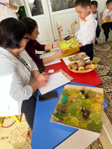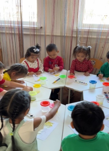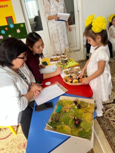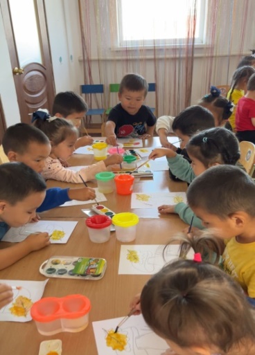 Айсана Жасенбайқызы «Гүл» тобына бойынша «Күзгі жапырақтар» тақырыбында Табиғаттың күз мезгіліндегі өзгерістері жайлы бейнелеу арқылы балалардың білімдерін кеңейту. Балаларды дәстүрден тыс әдістер арқылы жұмыс жасай отырып, логикалық ойлау қабілетін дамыту. Күзгі табиғаттың әсемдігін сезіне білуге және оны қорғауға тәрбиелеу мақсатында ұйымдастырылған оқу әрекетін өткізді.