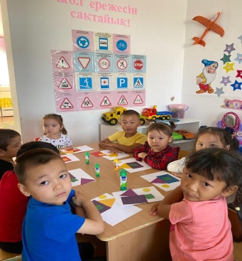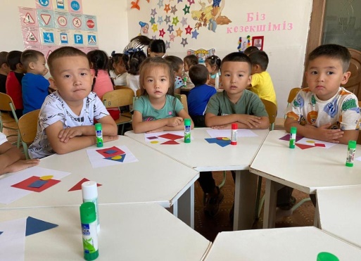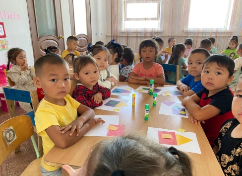 «Гүл» тобының тәрбиешілері «Менің үйім» тақырыбында, балаларды пішіндермен (ұшбұрыш, төртбұрыш) таныстыру; геометриялық пішіндерден (ұшбұрыш, төртбұрыш) үй құрастыруды үйрету. Тілдерін дамыту. Саусақтың ұсақ бұлшық еттерінің қозғалысын жетілдіру. Балаларды қамқор және жанашыр болуға тәрбиелеу мақсатында оқу ісі әрекетін өткізді.Тәрбиешілер алдын ала орындалатын жұмыс жүргізіп, үйдің қабырғалары, үйдің төбесі, үйдің терезесі болатыны туралы айтты.