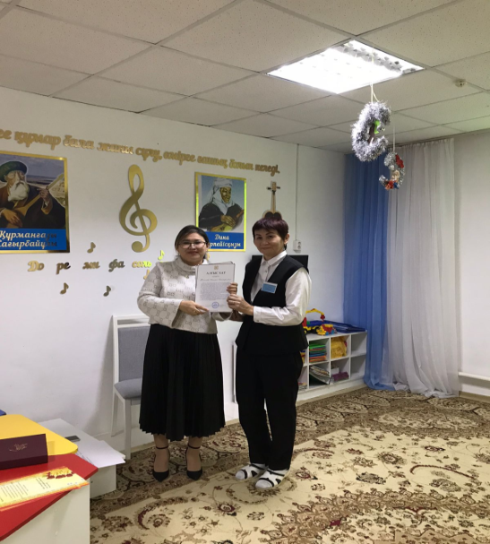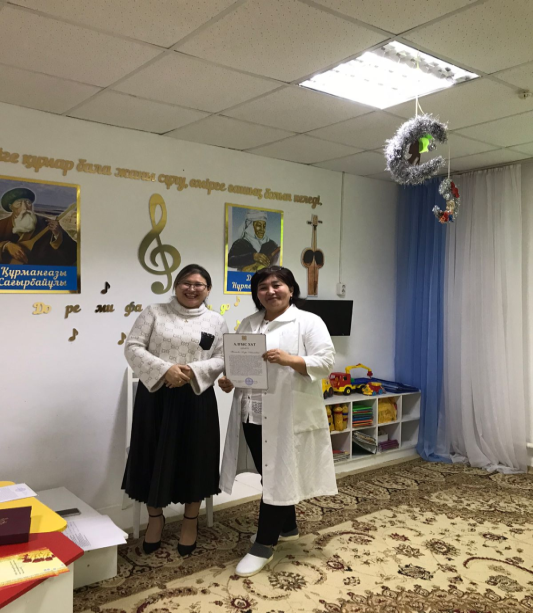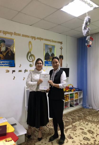 «Гүл» тобының тәрбиешісі Борис Ақжонас Берікқызы №42 «Ақ ниет» балабақшасында өткен «Ерекше білім беруді қажет ететін балалармен жұмыстану және құжаттарды жүргізу тәртібі» тақырыбында өткен семинарға қатысты.