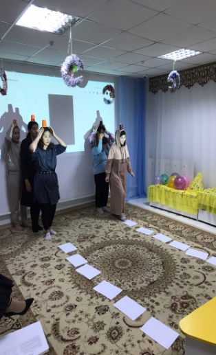 - «Таныстыру» тренингін өткізетін «Гүл» тобының тәрбиешісі Муфтуллина Айсана Жасенбайқызы.