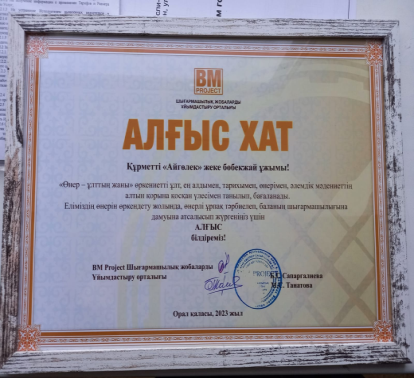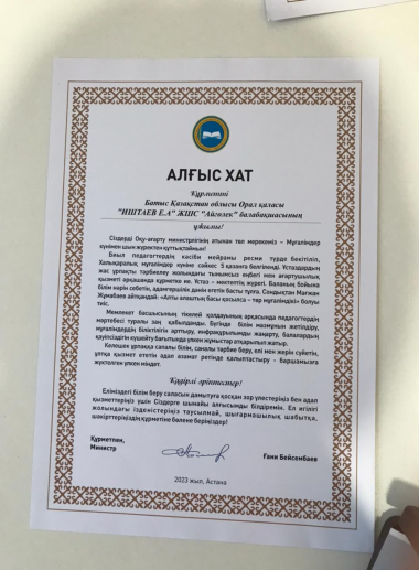 Сонымен қатар, «Ұстаздар күніне» орай Білім Министрі Ғани Бейсенбаев «Айгөлек» және «Айгөлек+» бөбекжайларымызға Алғыс хаттарын жолдады.