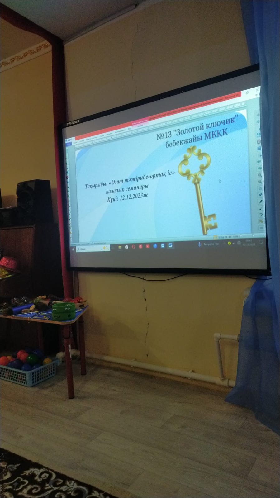 №13 «Золотой ключик» бөбекжайында «озат тәжірибе – ортақ іс» қалалық семинарына «Шуақ» тобының тәрбиешісі Л.Е. Кусаинова және «Ай» тобының тәрбиешісі Қ.Б.Жаналиева қатысып келді.