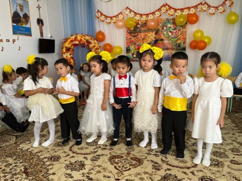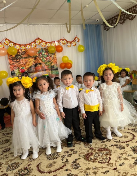 Қазан айында «Шуақ» тобының тәрбиешісі Л.Е.Кусаинова Күз мезгілінің ерекшеліктерін ұғындыру. Күз өнімдерімен таныстыру, олардың ағзаға пайдасын түсіндіру. Мерекелік көңіл – күй орнату. Балаларды ән салуға, би билеуге, түрлі іс - әрекеттерге тарту, бейімділіктерін арттыру. Шығармашылық ой - қиялдарының дамуына ықпал ету. Ата - аналар қауымымен тығыз қарым – қатынас қалыптастыру мақсатында «Алтын күз, әсем айналам, Еліне береке сыйлаған» атты мерекелік ертеңгілік өткізді.